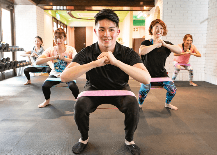 各エクササイズには、様々なバリエーションがあり、難易度を選択する事が出来る為、初心者でも経験者でも一緒にトレーニングが出来ます